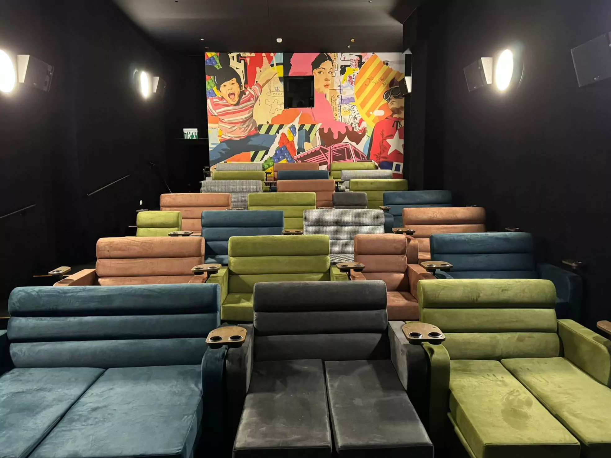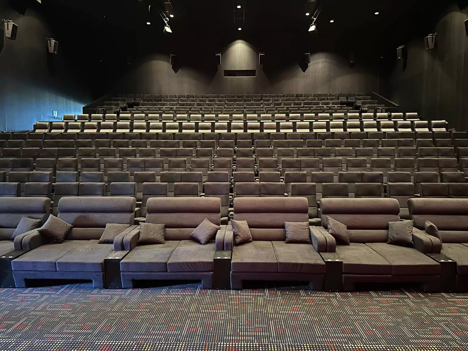 Plush auditorium-style cinema seats